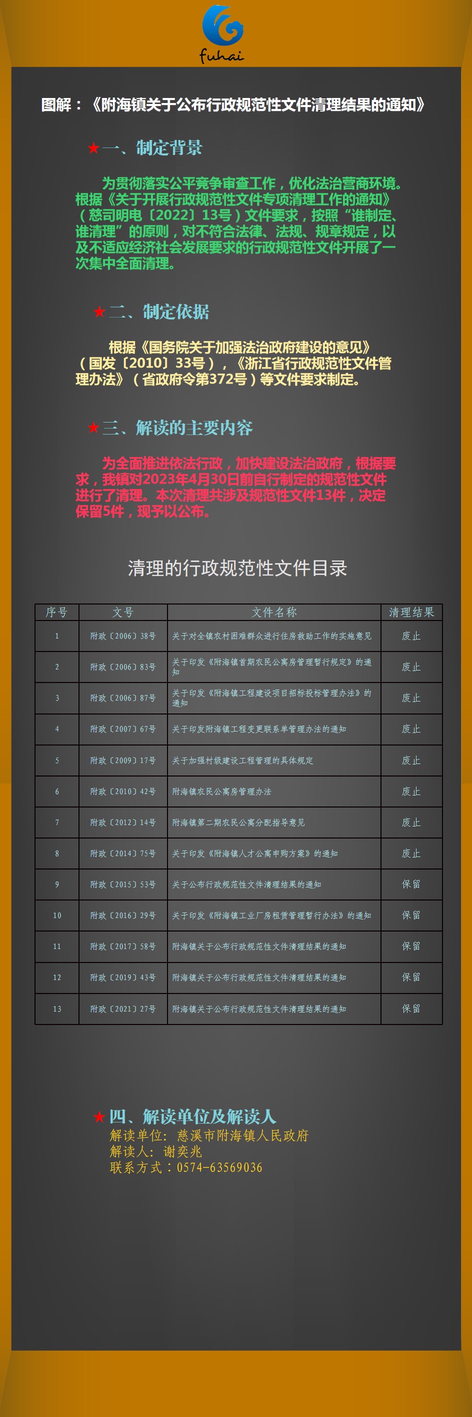 圖解:《附海鎮(zhèn)關(guān)于公布行政規(guī)范性文件清理結(jié)果的通知》
